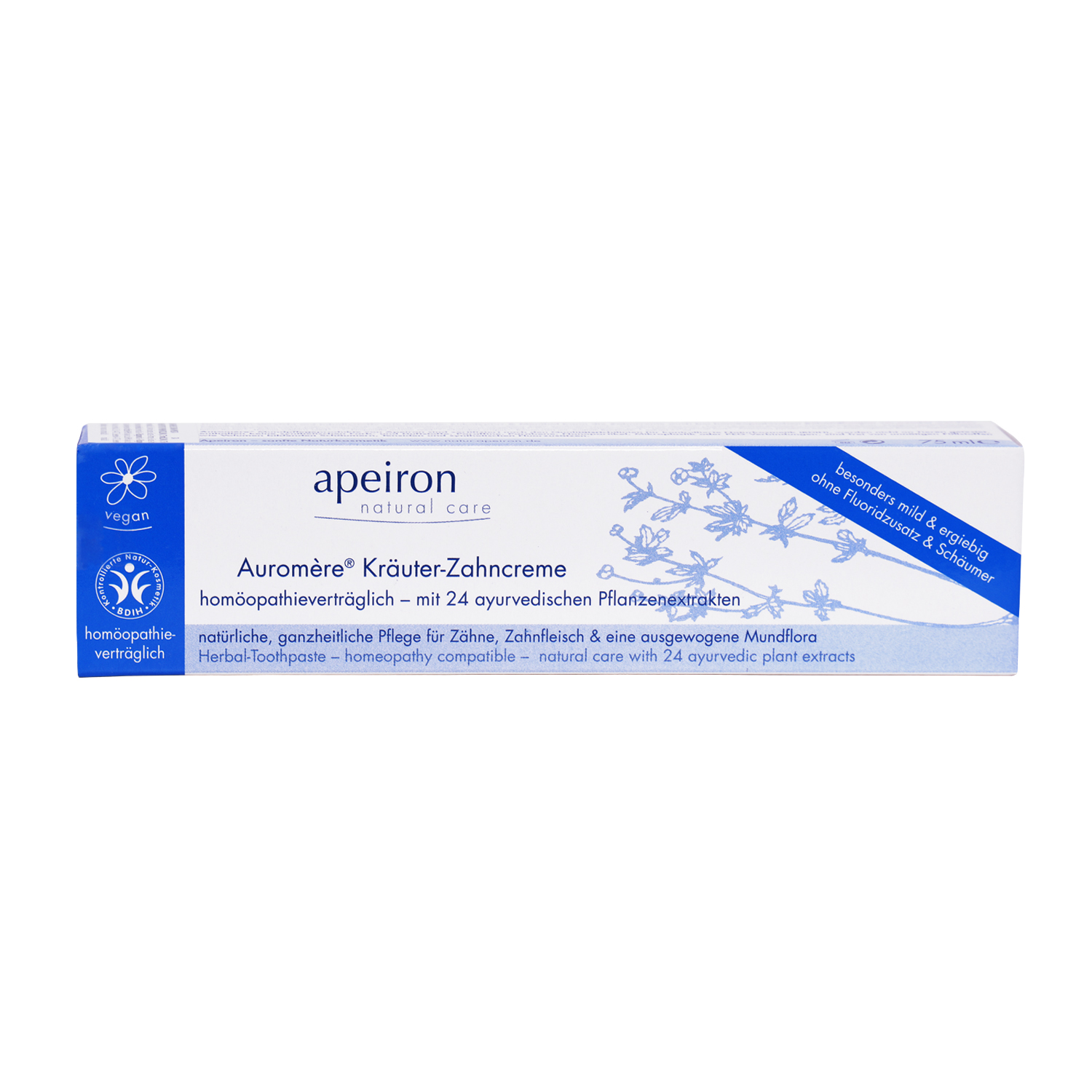 Kalcijev karboant, voda, glicerin, sorbitol, kora sladića*, silicijev dioksid, kora nima*, korijen araka*, ljuska zrnatog mogranja*, plod žižule*, kora crne šljive*, kora klinčića*, ljuska oraha*, kora barlerije*, ljuska badema*, orašasti plod terminalije*, kora hrasta*, kora američkog zantoksiluma*, kora alatuma zantoksiluma*, kora sapana*, kora indijskog broća*, kora akacije*, kora aristolokijafolije*, kora cejlonskog cimeta*, kora vakule*, kora tarkuna*, cvijet ajovana*, cvijet geranija*, sjeme timijana*/**, sjeme anisa**, irska mahovina*. Konzervans: natrijev benzoat